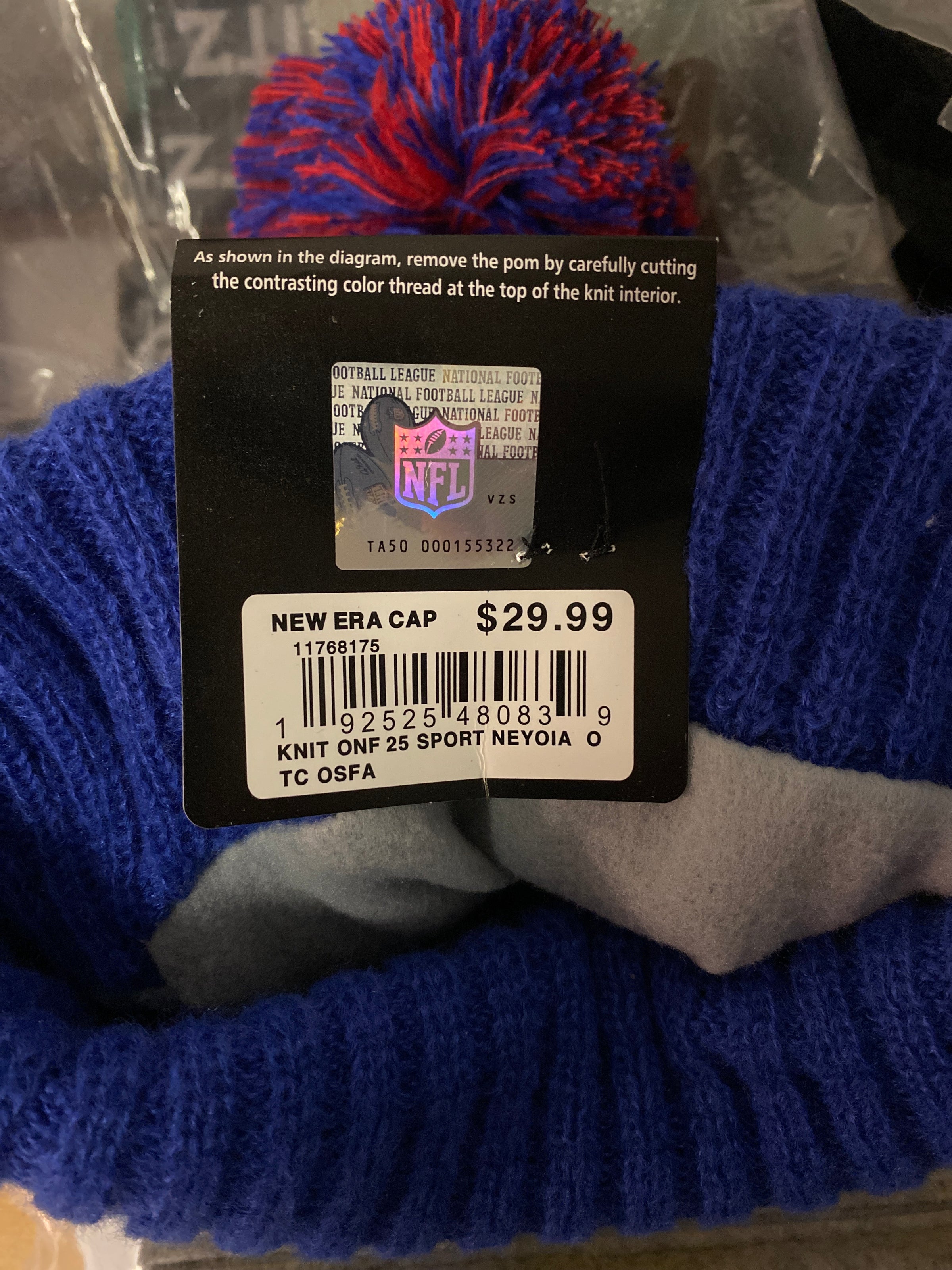 New York Giants bobble beanie hat