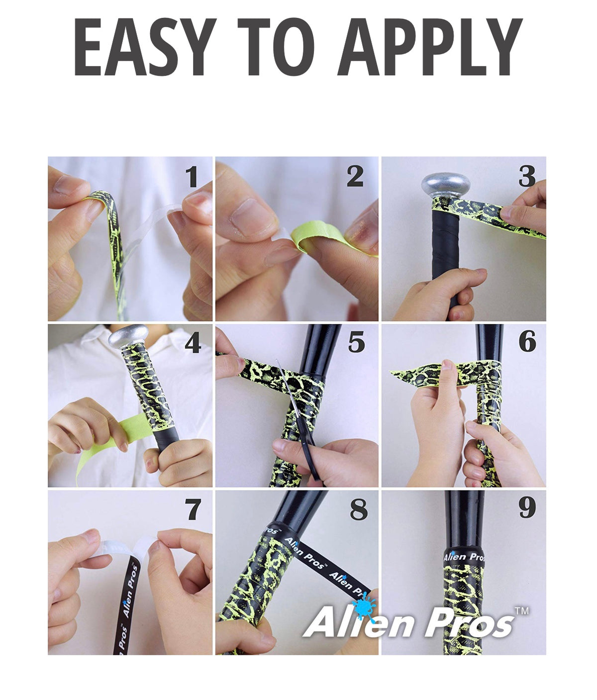 EASY TO INSTALL in less than a minute your bat will feel like brand new with Alien Pros baseball bat grip tape. Just peel, wrap, seal, play