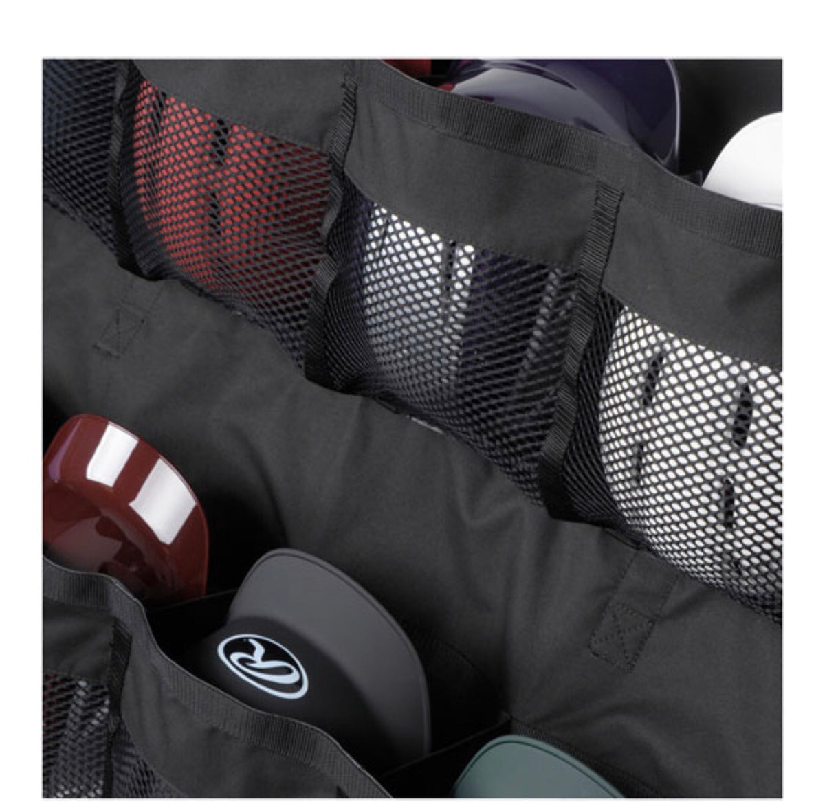 - Holds 12 batting helmets